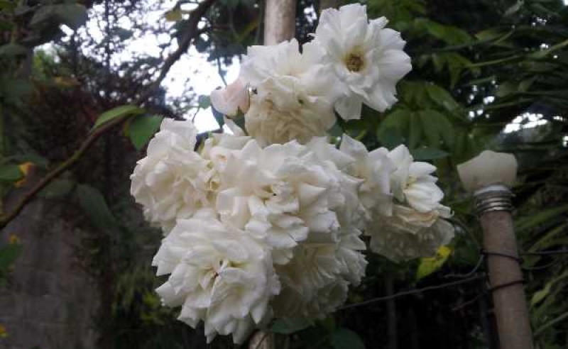 Falo aqui da rosa branca de cacho, a trepadeira - aquela dos cachos grandes, pendurados, de rosas miúdas e cheirosas. Muitos pensam que qualquer rosa branca serve mas isso não é correto. A rosabranca medicinal não nasce em estufa, é orgânica, dá a pleno sol e não tem características de flor de corte nem, se vende em floricultura, a não ser nas especializadas em ervas medicinais.