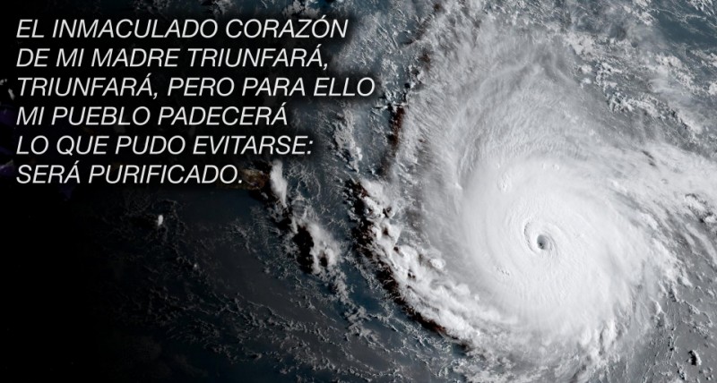 Deus não castiga, é o homem que em seu caminho pela Terra ofende a Deus, desobedece dentro de uma soberba incalculável e o pecado se volta contra o próprio homem. A Mãe me disse que aqueles que têm a seu encargo os países dissimulam os acontecimentos para não alarmar e que sabem que tem em suas mãos algo que não conseguem controlar, isto se chama: PURIFICAÇÃO. Como nossa Mãe me mencionou, não é só coincidência que ela tivesse aparecido em Fátima em 1917 e nos encontramos agora em 2017 cometendo mais erros e negando-nos a escutar os Alertas Divinos.