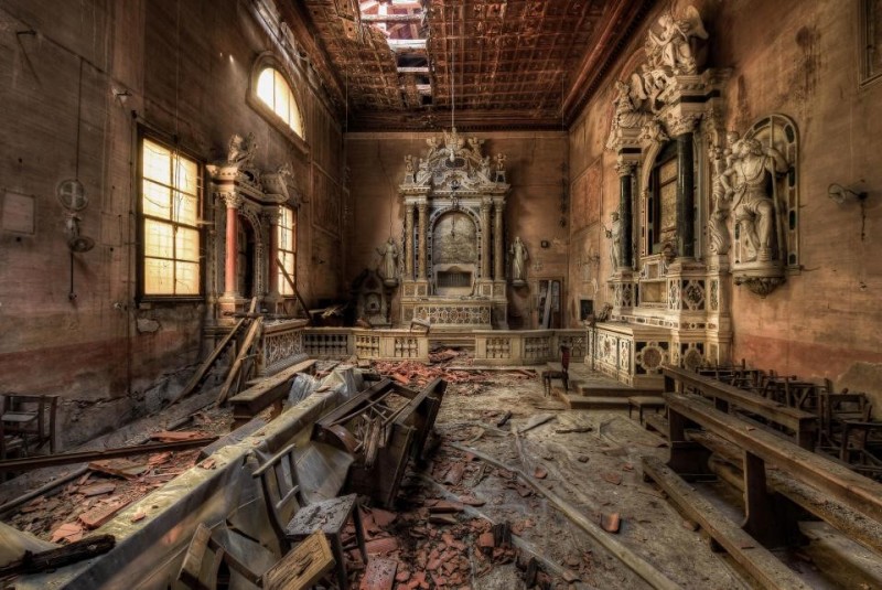 As imagens capturadas oferecem um vislumbre da assustadora desolação de antigas igrejas em toda a Europa, que foram deixadas para desmoronar enquanto o cristianismo declina em todo o continente.