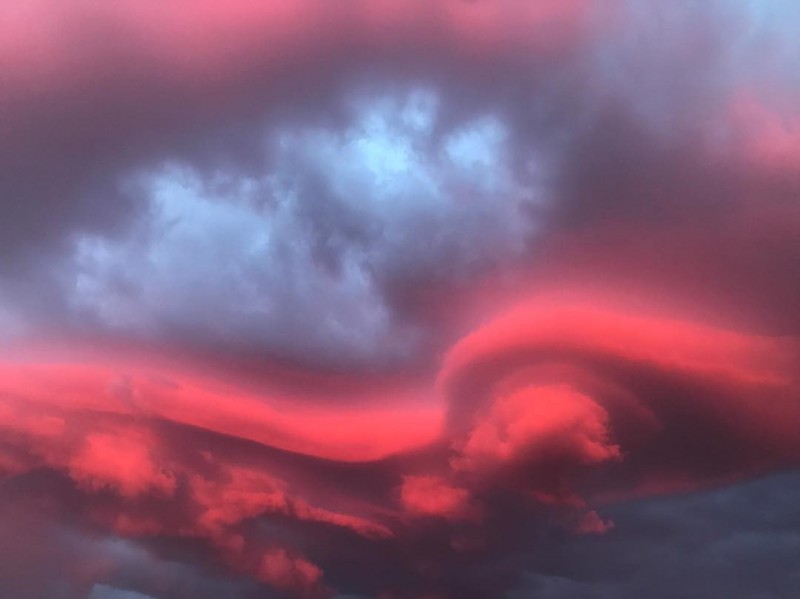 Impressionante! Esta gigantesca nuvem lenticular flutuou sobre Gallup, Novo México em 17 de julho de 2018 ao pôr do sol... E então começou a brilhar em vermelho brilhante!