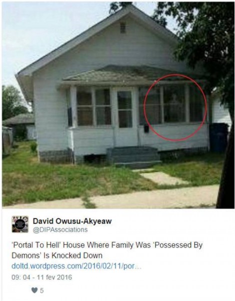 No estado de Indiana (Estados Unidos), foi demolida recentemente uma casa que tinha sido infestada por demônios e cujo caso foi centro de investigações por diferentes agências da polícia local desde maio de 2012.