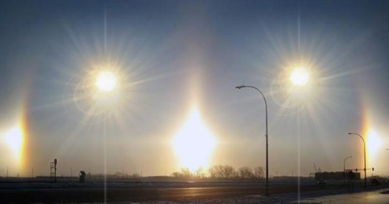 A ilusão também é conhecida como sol fantasma ou auréola de gelo. Em alguns países, também é chamado de "sun dog", mas seu nome oficial é parhelia. Esses pontos brilhantes no céu que aparecem de um lado e do outro e ao redor do sol, são formados pela refração da luz solar através de cristais de gelo altos na atmosfera.