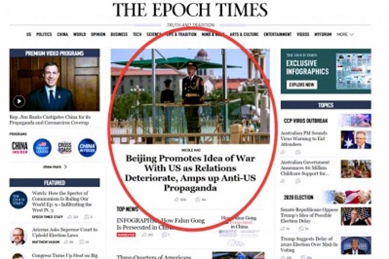 Du Wenlong, comentarista militar da campanha de propaganda global do regime chinês, e Song Zhongping, comentarista militar da emissora estatal CCTV, fizeram comentários recentes de que era altamente possível que os Estados Unidos e a China entrassem em conflito pelo Mar da China Meridional. Em 13 de julho, os Estados Unidos rejeitaram formalmente as reivindicações territoriais de Pequim no Mar da China Meridional, onde o regime reivindica quase toda a hidrovia.
