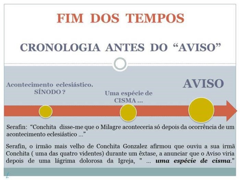 A respeito do Aviso, e antes dele acontecer (O Aviso) , a situação na Igreja vai ser muito má, a ponto de que um acontecimento irá ocorrer, que será doloroso e devastador. Na verdade, Serafim, o irmão mais velho de Conchita Gonzalez disse que ouviu a sua irmã Conchita ( uma das quatro videntes) durante um êxtase, a anunciar que o Aviso viria depois de uma lágrima dolorosa da Igreja ", uma espécie de cisma." Assim, o Aviso que virá, estará associado a um mistério doloroso que a Igreja vai atravessar..