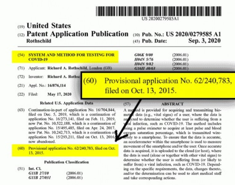 Em 2015, um homem chamado Richard A. “ROTHSCHILD” registrou uma patente para um ‘Sistema e Método para Testes para COVID-19’. O interessante sobre essa invenção de kit para detecção de vírus é que o inventor não é uma pessoa com formação em medicina, mas é um advogado. Leia a materia completa aqui.