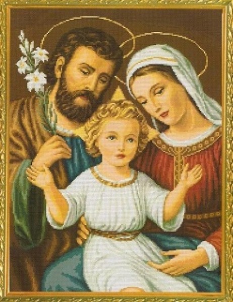 A sagrada família é constituída por Jesus Cristo; sua mãe, a Virgem Maria; e pelo seu pai adotivo e terreno, São José.