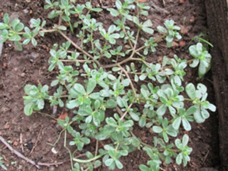 A décima primeira é a beldroega. Com suas folhinhas suculentas, ela cresce rapidinho, bem rasteira, e tolera semanas sem chuva. Não produz muito, mas se colhida de manhã é bem azedinha e complementa bem uma salada. Para fazer mudas, procure as sementes pretas que nascem nas capsulas pontudas em meio as folhas.