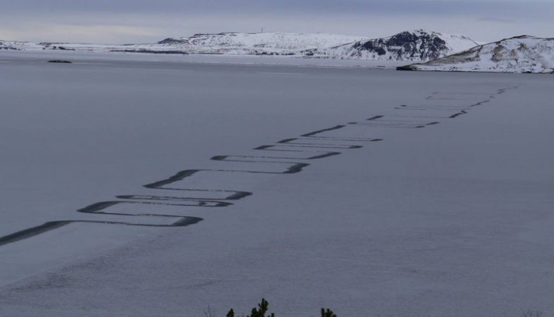 As linhas inexplicáveis, que se estendem por mais de dois mil metros na superfície do lago congelado, foram notadas pelos habitantes locais, provocando inúmeras teorias quanto à sua origem.
