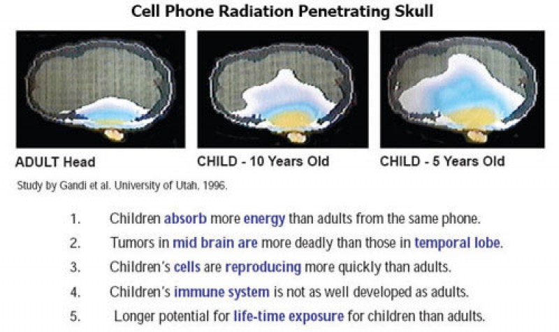 Infelizmente, as crianças e os adolescentes estão sob o maior risco — ambos para os tumores da glândula parótida e os tumores cerebrais — em razão dos ossos de seus crânios permitirem grande penetração da radiação dos celulares. A radiação pode entrar direto dentro de seus cérebros, onde os tumores são mais letais. Adiciona-se que a reprodução celular das crianças é mais rápida, assim eles se tornam mais suscetíveis ao crescimento agressivo das células. As crianças também enfrentam uma mais longa exposição pelo tempo de suas vidas. De acordo com o Professor Lennart Hardell da Suécia, aquelas que começam a usar o celular intensivamente na puberdade têm de 4 a 5 vezes mais câncer cerebral do que jovens adultos!