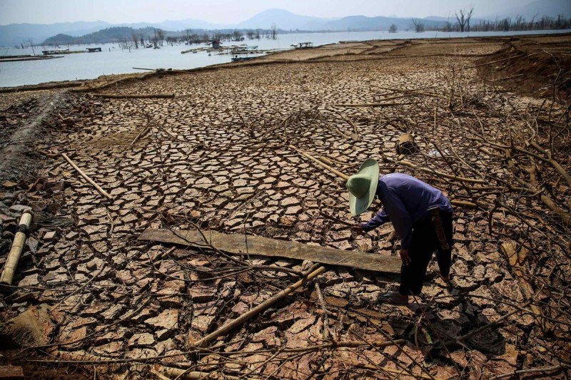Um homem coleta lenha em uma barragem seca na província de Java Ocidental, na Indonésia, em 15-09-2018.Foto: Xavier Garcia/Bloomberg.