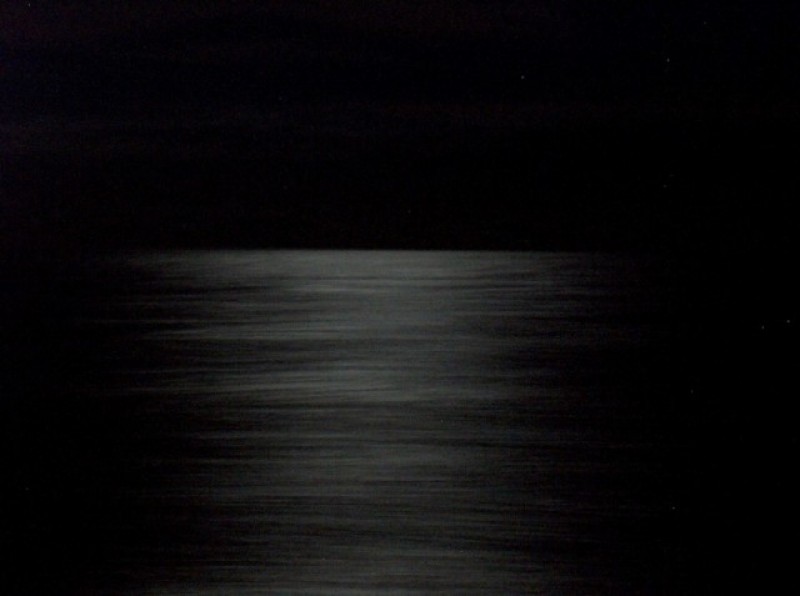 "Vejo como uma visão do alto, como se estivesse voando por cima de um mar, este tem a cor negra, e o céu também está negro, não há sequer estrelas. (parecido com essa imagem abaixo)