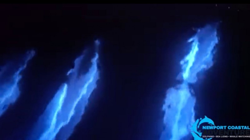 Os dinoflagelados bioluminescentes (neste caso, Lingulodinium polyedrum) fazem a água parecer azul brilhante quando perturbada por ondas, um barco que passa ou alguns golfinhos velozes. O brilho é um mecanismo de defesa para protegê-los de pequenos predadores.