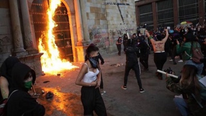 Feministas tentaram incendiar uma igreja de São Francisco em Bogotá (Colômbia) durante os protestos pelo Dia da Mulher, incendiando a porta, um fato que tornou necessária a intervenção urgente da polícia.