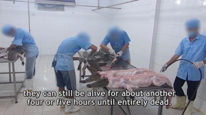 Os lagartos ficam ‘fechados sem se mover, em milhares de celas minúsculas de cimento’, explica a gravação que deixa em evidência a crueldade com que são tratados estes animais antes de serem torturados e executados. Os trabalhadores vietnamitas golpeiam com força suas cabeças quando estão na ‘sala cirúrgica’. Semiconscientes, os colocam sobre uma mesa metálica. Ali, um deles introduz uma grande varinha por sua medula espinhal e começam a esfolá-los, quando muitos deles ainda se movem.