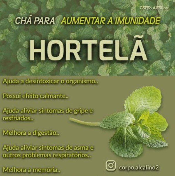 O mentol que existe na hortelã é um eficiente descongestionante, além de ser um bom expectorante: ajuda a expelir muco e a diminuir a tosse. Tomar chá de hortelã é uma boa pedida para diminuir a dor de garganta e a tosse seca. Também possui propriedades que tem sido associadas a prevenção de diferentes tipos de câncer, especialmente o câncer de próstata.