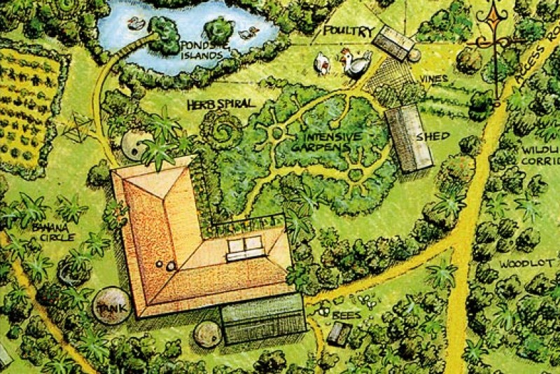 A partir daí e com a observação e experiência das comunidades aborígenes, ele passou a desenvolver um formato ideal, que permite uma harmonia em termos de habitação, produção de alimentos, economia e cuidado com os recursos naturais.
