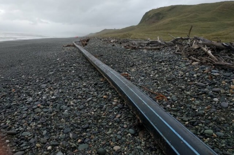 O tubo de 100 metros de comprimento foi descoberto em uma praia de Te Waewae Bay, Southland, onde foi fotografado pelo Environment Southland antes de ser postado no Facebook.