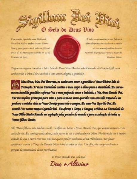 O SELO DO DEUS VIVO (imagem ao lado) está disponível para impressão (arquivo .pdf ) na Seção “INDICAMOS PARA LEITURA” deste site.