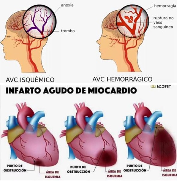 Ataque cardíaco – acontece quando há o bloqueio do fluxo sanguíneo para o músculo cardíaco.