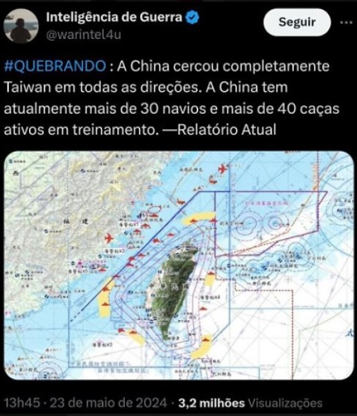"GUERRAS E RUMORES DE GUERRAS" (Mt 24, 6) - Taiwan cercado em todas as direções.