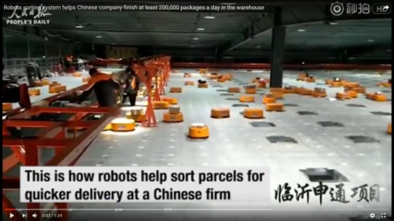 Um vídeo publicado por uma emissora de televisão local chinesa mostra um exército de pequenos robôs alaranjados ordenando pacotes em um depósito no leste da China, mostrando o que parece ser o futuro da produção e o fim de milhares de postos de trabalho em todo o mundo para as pessoas. As imagens correspondem a um centro de distribuição de pacotes da empresa Shentong Express.