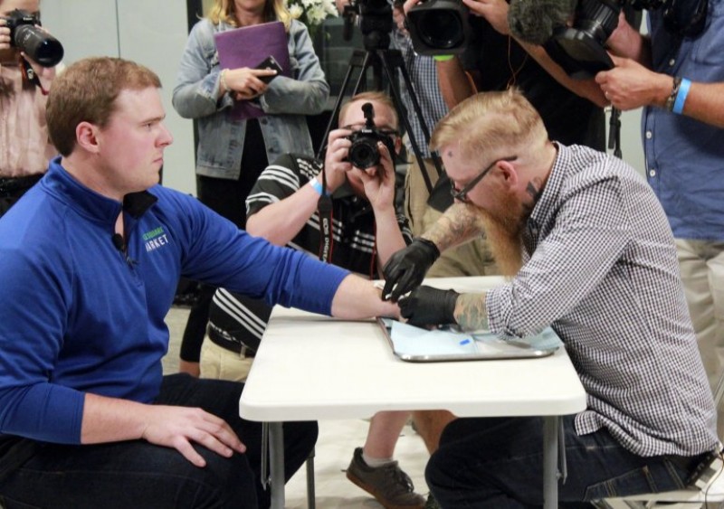 Maioria dos funcionários da empresa de tecnologia Three Square Market já convive com corpo estranho, do tamanho de um grão de arroz, aplicado com seringa sob a pele entre os dedos polegar e indicador.